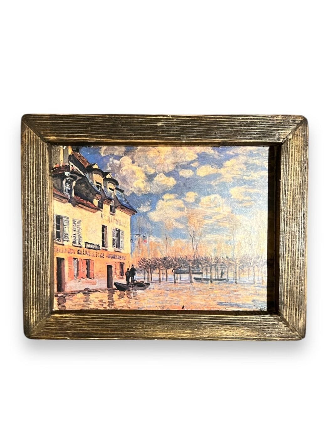 This painting is a reproduction of “Boat in the Flood at Port Marly” (also known as L’Inondation à Port-Marly or The Bark During the Flood), an 1876 oil painting by the French Impressionist painter Alfred Sisley.