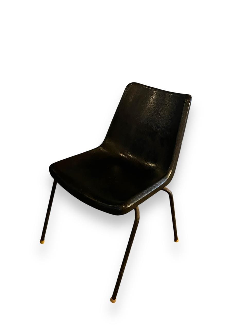 A vintage chair, designed by Alberto Rosselli for Saporiti Italia or Rima in the 1960s, featuring a black plastic seat and back mounted on a black enameled or tubular steel frame.