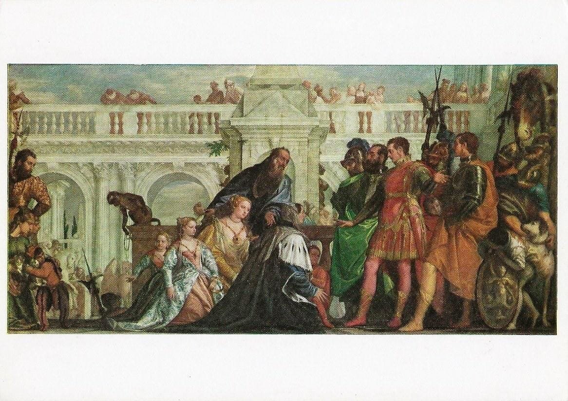 The Family of Darius Before Alexander, an oil painting on canvas by the Italian Renaissance artist Paolo Veronese, created around 1565–1570. The original artwork is held in the collection of the National Gallery in London.