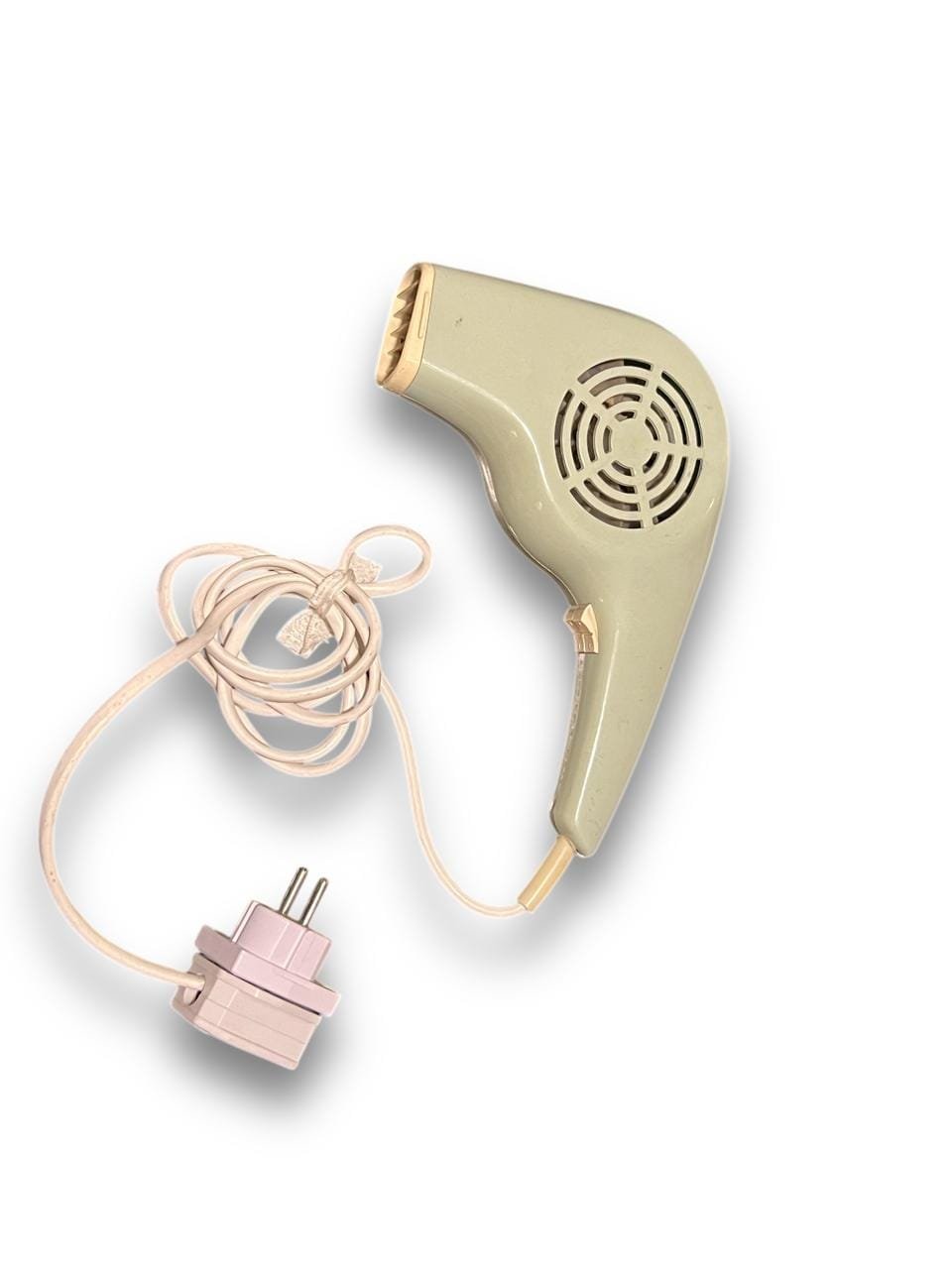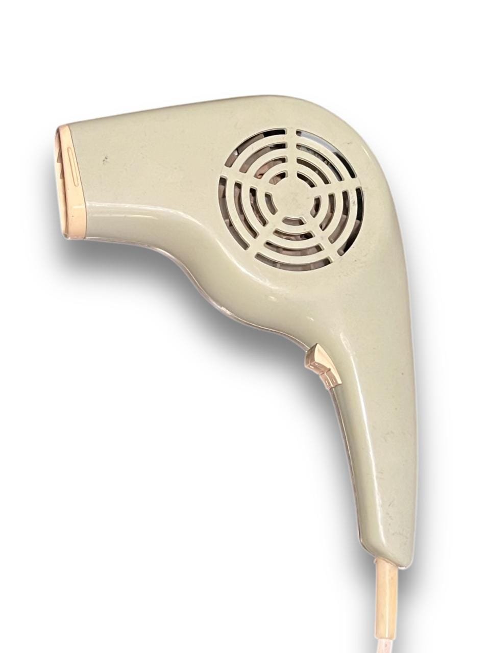 A vintage handheld electric hair dryer from around the 1960s – 1970s.